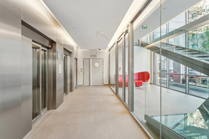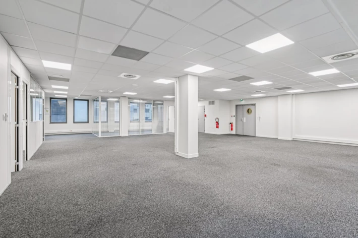 Ces bureaux traversants, lumineux et entièrement climatisés, sont situés dans un immeuble de standing neuf livré en 2016. L'immeuble bénéficie de prestations haut de gamme : gardiennage 24h/24, télésurveillance, contrôle d'accès par badge, ventilation double-flux, fibre optique et accès PMR.