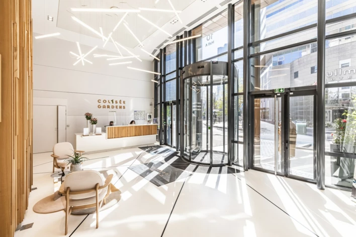 L'immeuble, code du travail, se compose de 3 bâtiments articulés autour d'un vaste jardin intérieur avec des espaces aménagés pour le bien-être des occupants.