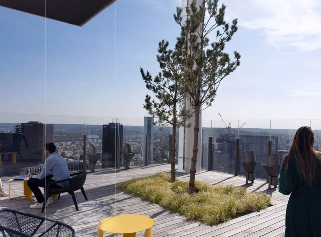 - Plus de 4 000 m² de services sur mesure : Business center de 170 places en rooftop, au 25ème étage avec vue exceptionnelle à 360 degrés, Espace wellness au 25ème étage Conciergerie 5 étoiles, 6 concepts de restauration : brasserie, RIE de 1 230 couverts, coffee-shop, restaurant