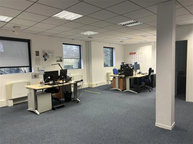 Au 1er étage d'un immeuble tertiaire, ces locaux sont composés de 5 bureaux doubles, 1 bureau simple, 1 open-space (10 postes de travail), 1 salle de repos avec cuisine ainsi que des sanitaires et point d'eau privatifs.