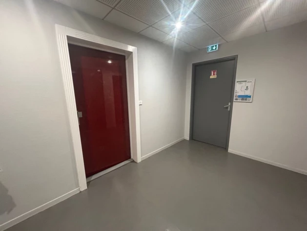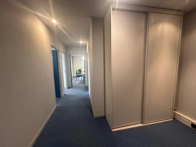 Le plateau est aménagé et cloisonné, comprenant trois bureaux, un local technique et de nombreux rangements.