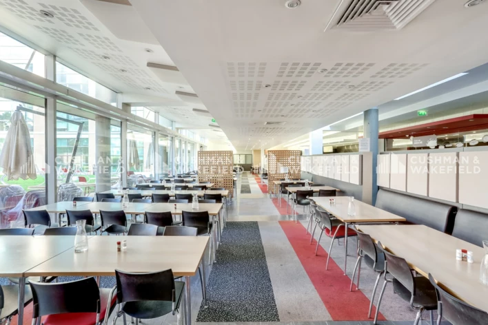 L'immeuble de bureaux est équipé d'un restaurant d'entreprises et d'un accueil avec hôtesses.