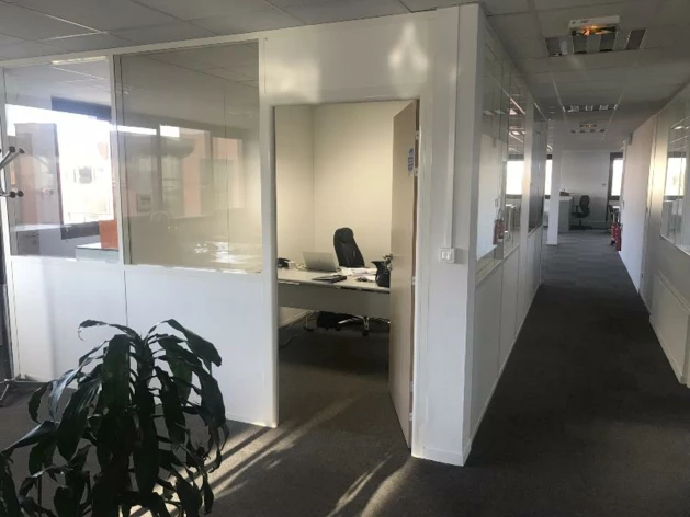 La surface est louée en très bon état, déjà cloisonnée et câblée avec cuisine et sanitaires privatifs.