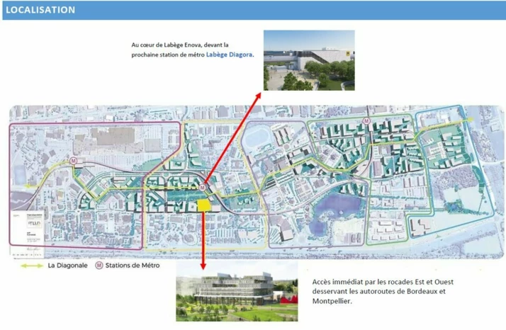 - Au coeur de Labège Enova, devant la prochaine station de métro LABEGE DIAGORA