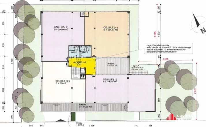 Sur un site clos et sécurisé, un immeuble neuf à bâtir d'une surface totale de 2 310 m² à usage de bureaux en R+2, comprenant deux niveaux de bureaux de 1 155 m² au 1er et 2ème étage, et deux niveaux de parkings dont un semi-enterré et un autre en entresol.