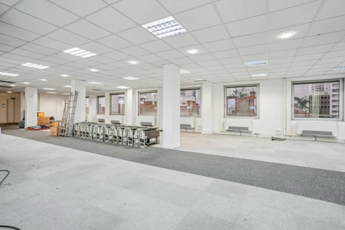 Ces bureaux offrent une grande souplesse d'aménagement avec des espaces en open-space, des bureaux privatifs, et une salle de réunion. L'immeuble dispose également d'un hall d'accès sécurisé, de parkings en sous-sol, d'ascenseurs modernes, et d'une terrasse privative.