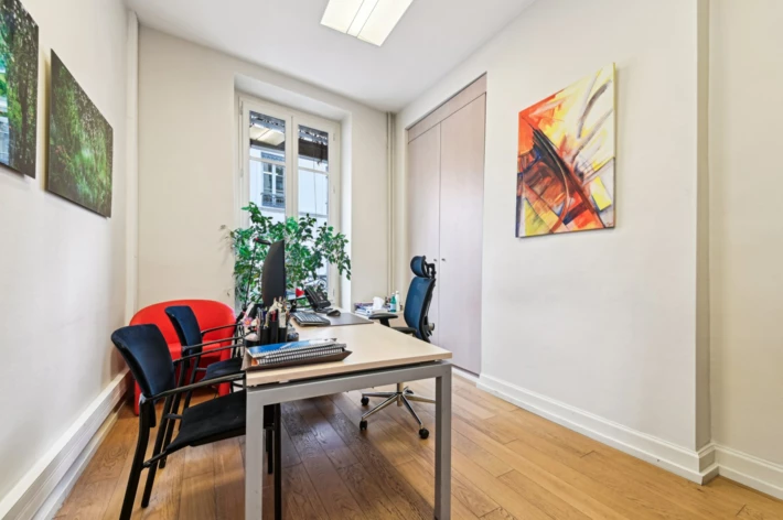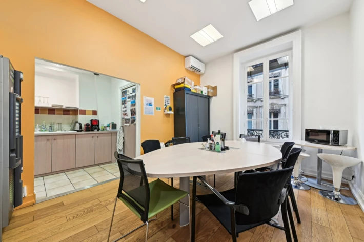 Ces bureaux en duplex, d'une surface totale de 611 m², sont situés dans un magnifique immeuble haussmannien. Pensés pour allier élégance et praticité, ils offrent un cadre de travail raffiné au coeur de Lyon.