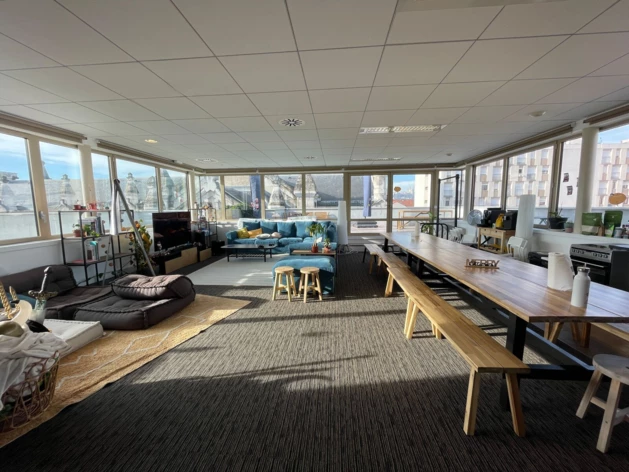 - Mixe open space, bureaux individuels et salles de réunion