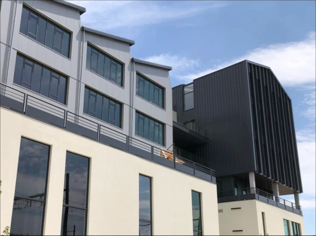 L'immeuble, à l'architecture contemporaine inspirée du passé industriel du quartier, répond aux normes RT 2012 et dispose d'une certification environnementale BREEAM Very Good. Conçu pour le confort et la performance, il est équipé d'un système de rafraîchissement chaud/froid DRV 3 tubes, d'une ventilation double flux, de faux plafonds en dalles minérales et de moquette en dalles plombantes. La fibre optique est installée, et l'accès se fait via un système Vigik sécurisé avec portier vidéo. L'éclairage LED et les détecteurs de présence contribuent à la maîtrise des consommations.
