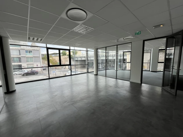 Au premier étage, une surface de 346 m² se compose de plusieurs open spaces lumineux, favorisant le travail collaboratif et l'organisation flexible des équipes. L'aménagement comprend également plusieurs bureaux cloisonnés pour des besoins de confidentialité, une salle de réunion moderne, ainsi qu'une cuisine équipée permettant de créer un espace convivial pour vos collaborateurs. L'ensemble est câblé et pensé pour faciliter l'installation rapide de vos équipements informatiques et téléphoniques.