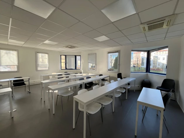 Les plateaux se composent de plusieurs grandes salles lumineuses, bénéficiant d'un apport important de lumière naturelle qui contribue au confort des utilisateurs. L'ensemble propose un cadre de travail agréable et efficace, propice à l'activité quotidienne des équipes.