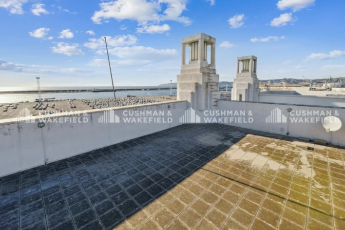 Cet immeuble indépendant en R+3 aux normes PMR offre une surface totale de 1 114 m², divisible à partir de 278 m², avec une superbe vue mer à chaque niveau et un toit-terrasse d'environ 200 m².