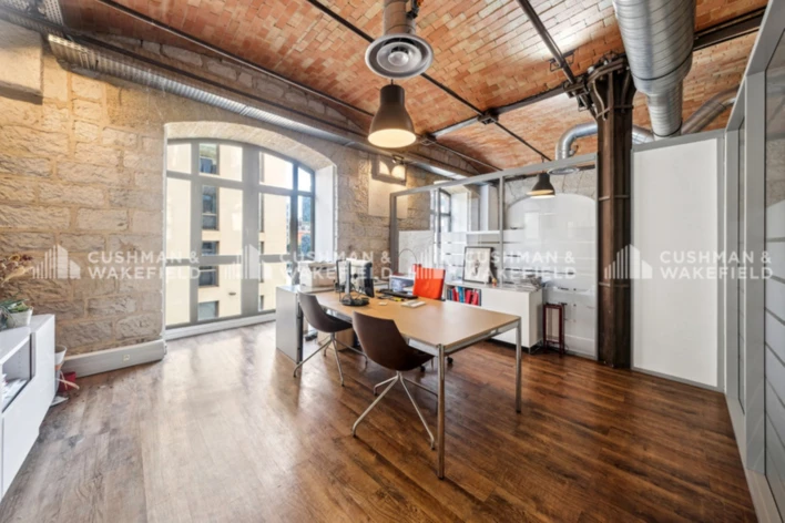 Ces bureaux disponibles à la location offrent une surface d'environ 250 m² au 2ème étage. Le charme des Docks opère dès votre arrivée avec ses murs en pierre, ses voûtes en brique et ses piliers en fonte.