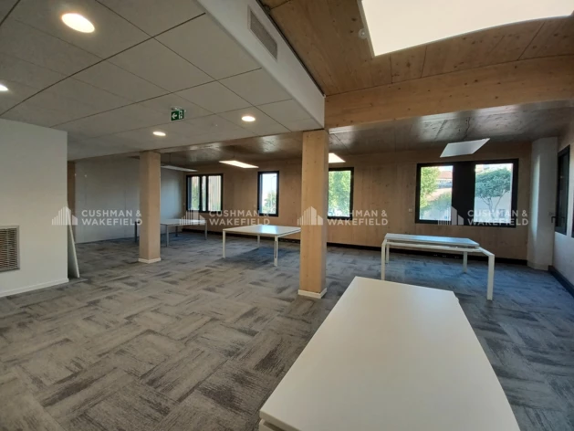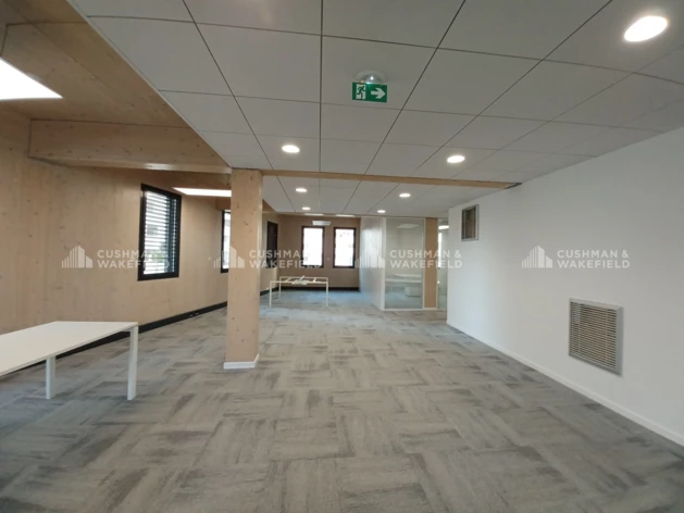 Ces bureaux à louer sont aménagés en open space ou cloisonnés, avec climatisation réversible, faux plafonds, moquette en dalles, sanitaires en parties communes et terrasses pour certains lots.