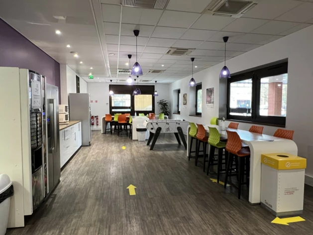 Restaurant inter-entreprises au sein du parc (avec frigos connectés) et centre commercial Vélizy 2 accessible à moins de 15 minutes à pied.