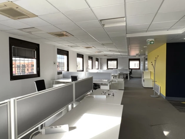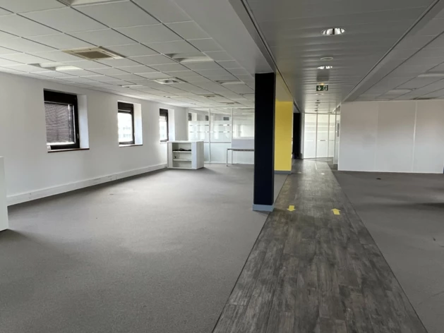 Plateaux en état d'usage, partiellement cloisonnés, pouvant être livrés rénovés selon les besoins, avec climatisation réversible, profondeur de 12 m et hauteur libre de 2,50 m, favorisant des aménagements flexibles.