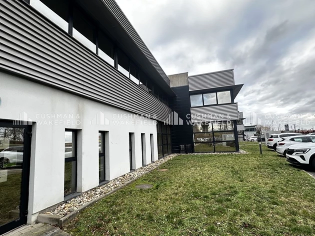 Dans un environnement verdoyant, l'immeuble est très facilement accessible depuis les axes autoroutiers avec un arrêt de bus au pied du site.