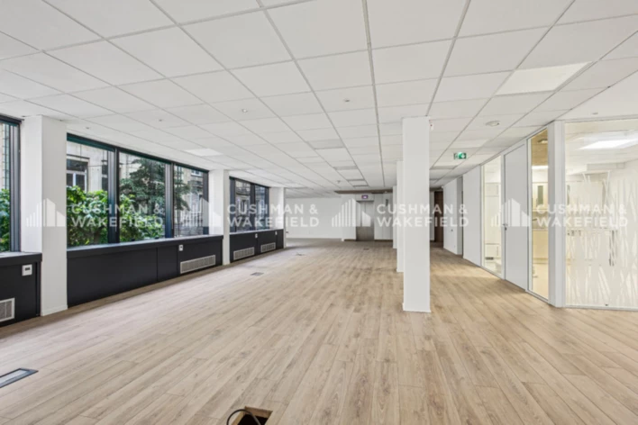 Au 1er étage, découvrez une surface de 537 m² entièrement rénovée. Elle est composée d'une partie Haussmannienne avec 4 mètres de hauteur sous-plafond, parquet de Versailles, moulures et cheminées, et d'une partie moderne donnant sur la cour intérieure entièrement ouverte avec une cuisine aménagée.