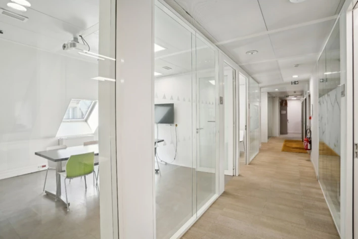 Nichés dans un immeuble en pierre de taille, ces bureaux offrent des parties communes de très bon standing ainsi qu'une charmante cour arborée.