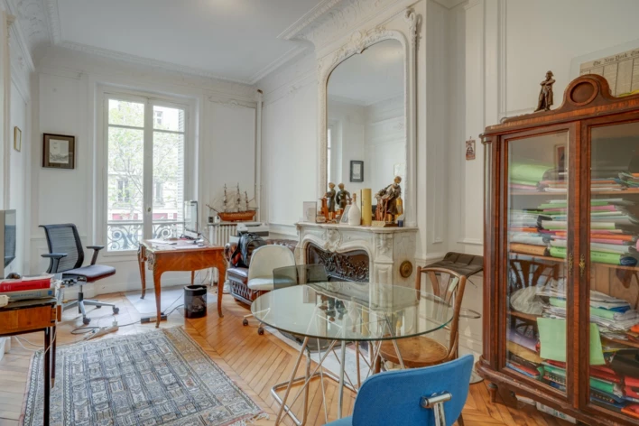 Les parquets authentiques et les moulures confèrent un cachet indéniable aux espaces de travail, créant une ambiance élégante et chaleureuse.
