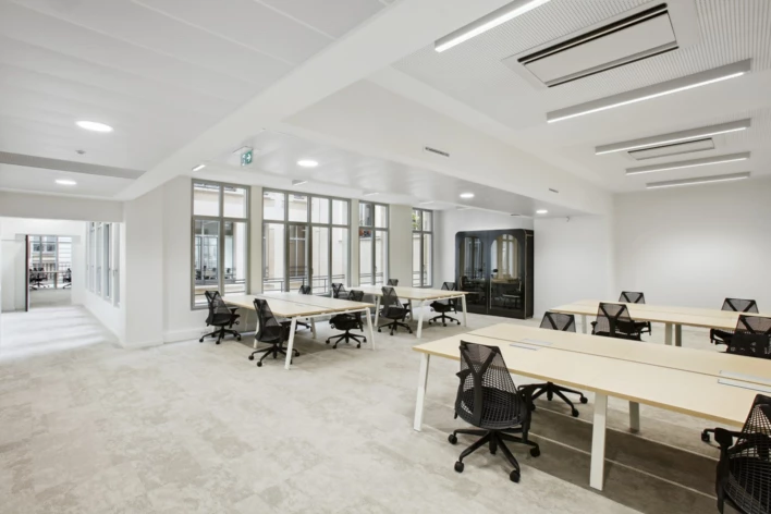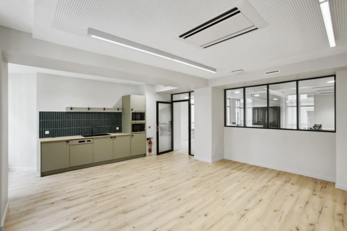 La surface entièrement rénovée, meublée & équipée, et propose tous les services nécessaires à l'épanouissement de vos collaborateurs. Situés autour d'une cour calme et arborée, profitez de grands plateaux complétements décloisonnés.