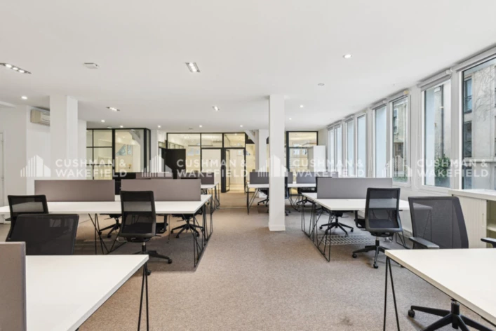 Situé au premier étage d'un immeuble rénové récemment, cet espace lumineux et moderne offre un cadre de travail agréable et modulable, idéal pour répondre aux besoins de vos équipes.