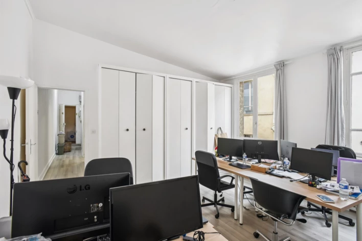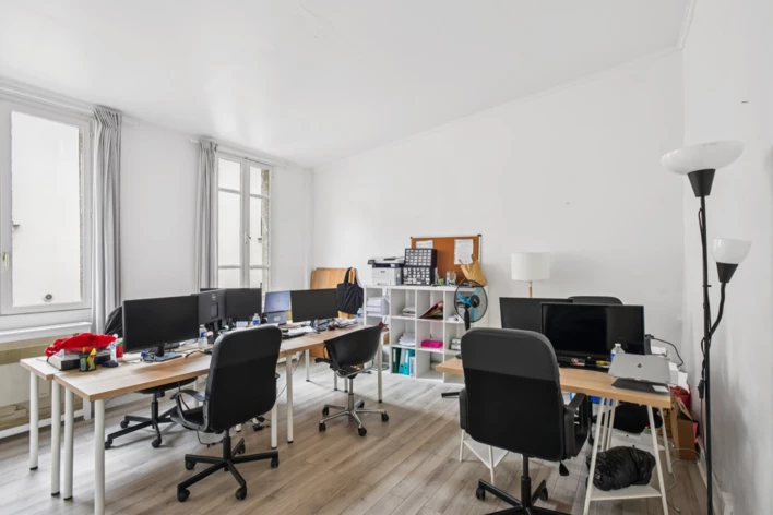 Située dans la cour d'un bel immeuble en pierre de taille, cette surface bénéficie d'un environnement agréable et de parties communes bien entretenues.