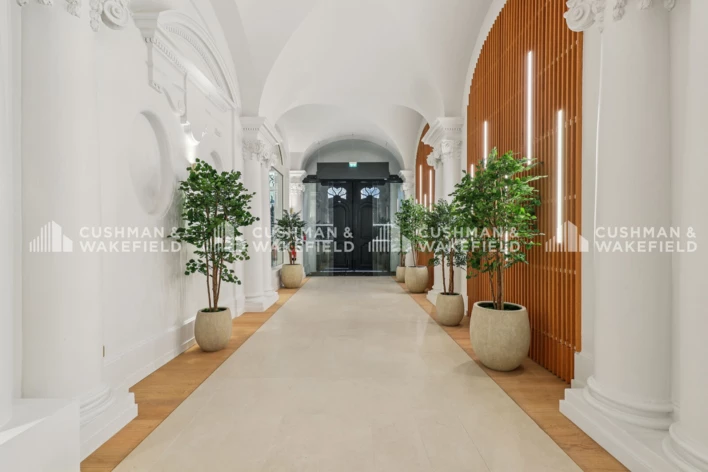 Entièrement restructuré, le 18 Hamelin développe environ 2 524 m² de bureaux et d'espaces serviciels, au sein d'un immeuble Art Nouveau remarquable, dont l'architecture a été sublimée dans le respect de son héritage historique. La réhabilitation conjugue avec élégance le cachet patrimonial - façades en pierre de taille, volumes remarquables, salles de réception à très grande hauteur sous plafond - et les standards les plus exigeants du bureau contemporain. L'entrée principale, repensée autour d'un porche réaménagé, ouvre sur des espaces communs raffinés et baignés de lumière naturelle, articulés autour d'une spectaculaire serre végétale verticale sur plusieurs niveaux.