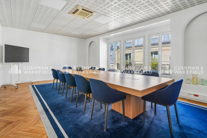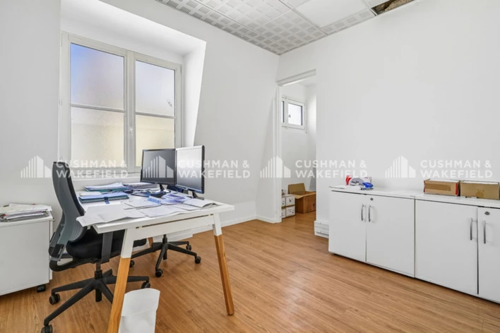 Situé au 5ème étage d'un très bel immeuble Haussmannien en pierres de taille, ce plateau de 270 m² de bureaux (+ 30 m² de locaux techniques au 6ème) offre un aménagement mixte cloisonné et ouvert. Parquet, moulures, salle de réunion 12 personnes, kitchenette, balcon filant et climatisation réversible. Parties communes de qualité, gardienne, accès sécurisé par badge, fibre optique, ascenseur.