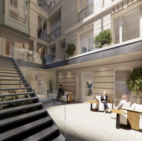 Conçu par les architectes Moatti & Rivière, l'immeuble développe 110 m² d'espaces extérieurs dont un patio végétalisé de 40 m², une cafétéria, des tisaneries à chaque étage, un local vélos, et une capacité d'accueil de jusqu'à 375 personnes incluant un effectif ERP.