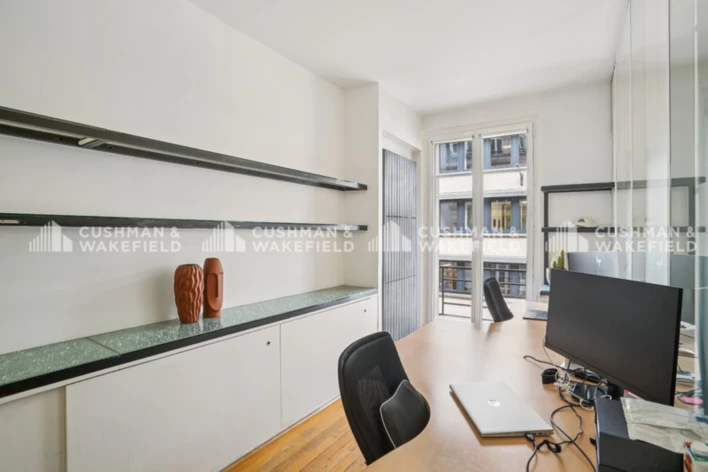 La cour pavée arborée qui précède la grande salle de réunion apporte un cachet unique et une atmosphère paisible en plein coeur de la capitale. Parquet, huisseries neuves, décoration soignée : chaque détail contribue à créer un cadre de travail haut de gamme, idéal pour des sociétés de conseil, cabinets d'avocats ou directions de groupe.