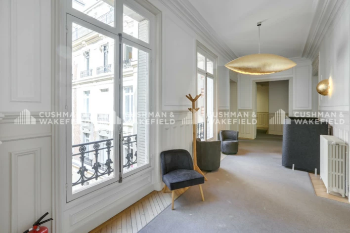 Nous vous proposons dans un bel immeuble pierre de taille, avec parties communes de caractère, une surface de bureaux de 290m2 à louer en plein coeur du 17ème arrondissement de Paris, à proximité immédiate de la Place de l'Etoile et des Champs Elysées.