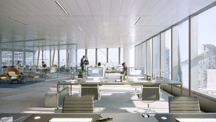 Culminant à 220 mètres, elle propose environ 44 500 m² de bureaux divisibles à partir de 985 m², organisés autour de grands plateaux lumineux d'environ 1 900 m² avec 2,90 m de hauteur sous plafond.