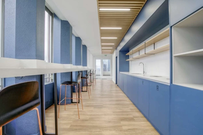 Les bureaux sont configurés pour offrir un environnement de travail optimal avec des plateaux rénovés, des faux plafonds techniques, et une climatisation performante.