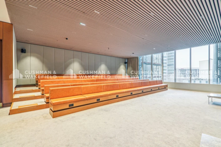 Le socle serviciel de la tour se distingue par des prestations exceptionnelles, incluant une entrée vitrée triple hauteur, un bar, un restaurant interentreprises (RIE), une cafétéria, une salle de sport, des salles de réunion et un business center.