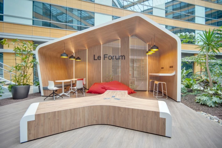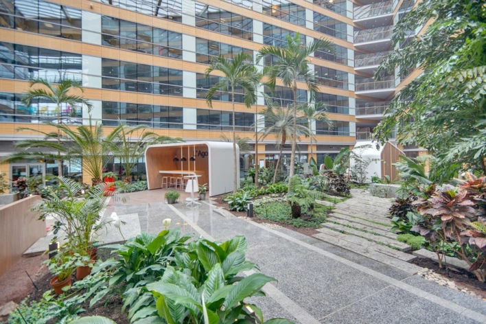 Vous apprécierez ses 4 salons clubs, son auditorium de 150 places ou encore sa salle de sport équipée de sauna et hammam. Un restaurant d'entreprise de 500 places assises et une cafétéria complètent sa gamme de services.