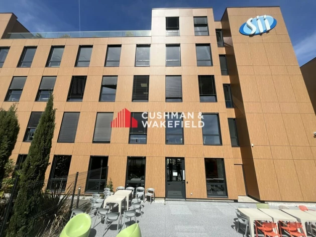 Le bâtiment offre une architecture moderne et dynamique, est livré entièrement terminé, hors cloisons et hors câblage informatique