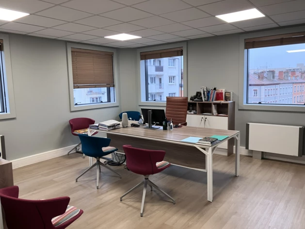 AU R+7, 461m² de bureaux en étage élevé avec une vue dégagée sur LYON. Le plateau est entièrement cloisonné et des travaux de rafraichissement sont à prévoir.