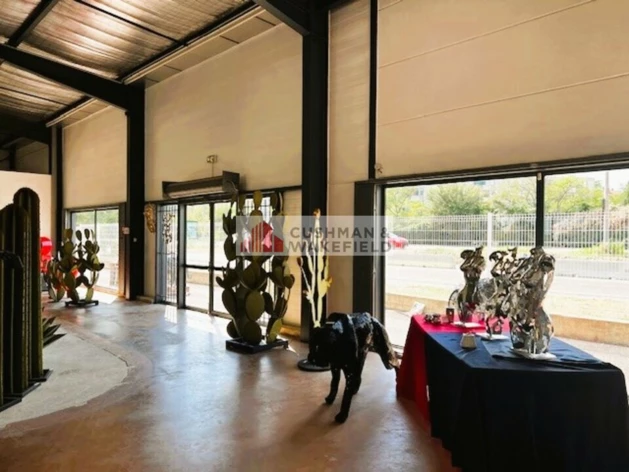 En 1ère ligne du boulevard périphérique de Nîmes, local commercial récent en très bon état à louer de 400 m² environ de plain-pied sur plus de 1000 m² de terrain.