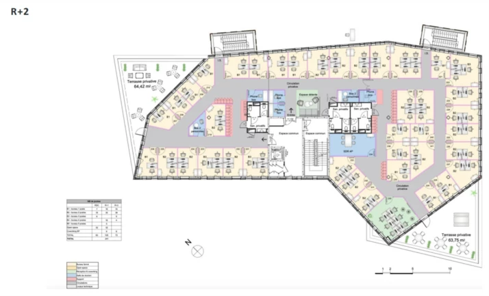 2500 m² disponibles à la location soit 240 espaces de travail équipés dans des bureaux privatifs