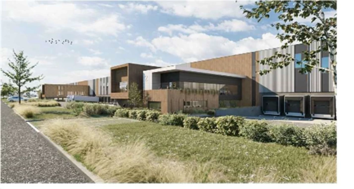 Hauteur sous poutre de 11,8 m, certification BREEAM Very Good, et toiture prête pour panneaux photovoltaïques.