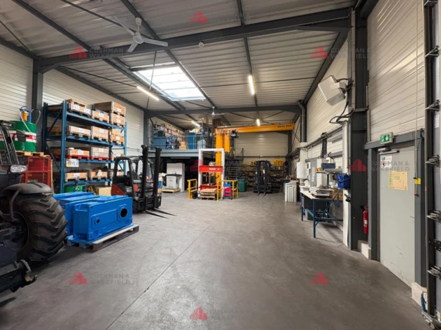 Sur un terrain clos et sécurisé d'une contenance de 900 m², ces locaux sont composés d'un atelier chauffé de 200 m² (HSF : 6 m), d'une mezzanine aménagée de 30 m² et de bureaux / locaux sociaux de 100 m². Une porte sectionnelle motorisée (4,20 m x 3,50 m) est également présente.