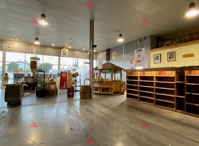 Au sein d'un ensemble immobilier soumis au régime de la copropriété, ce bâtiment est composé d'un local commercial d'une surface de 884 m² ainsi qu'une zone de stockage (avec porte sectionnelle).