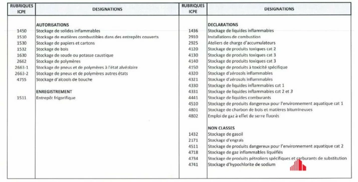 - Une protection incendie extérieure par poteaux incendie et une protection intérieure par système automatique d'extinction d'incendie du type ESFR selon la norme NFPA 13