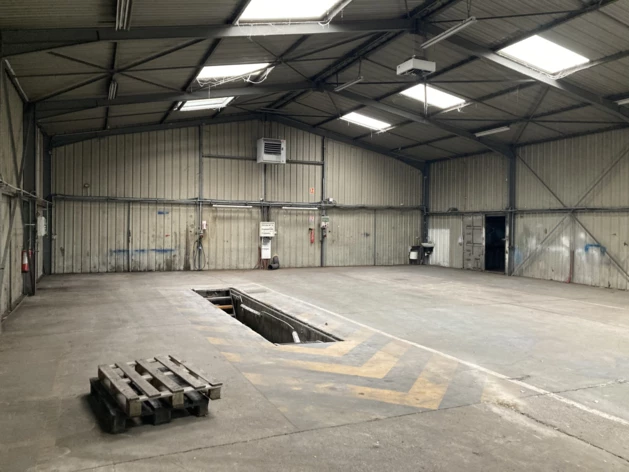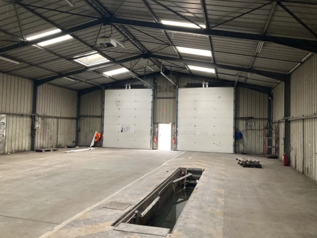 Le terrain est équipé d'un algéco a destination de bureau et d'un bâtiment de 450 m² a vocation de stockage équipé de deux portes sectionnelles de plain pied , d'une fausse et d'un aire de lavage.