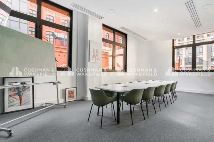 Les espaces de travail sont livrés aménagés en différentes typologies de bureaux privatifs et en open space, de salles de réunion équipées ainsi que d'espaces de convivialité.