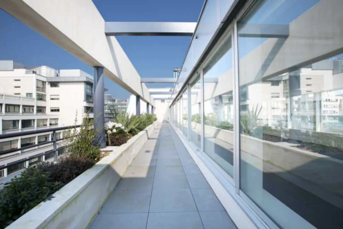 Très lumineux avec jardin et terrasse au dernier étage, cette offre de bureaux à louer en contrat de prestations de services est idéalement localisée à quelques pas du quartier des Sablons et du Bois de Boulogne.