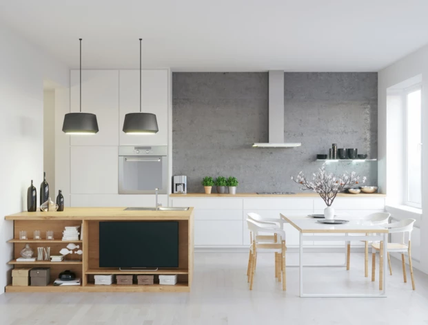 La cuisine ainsi que l'espace de convivialité au mobilier design sauront faire de chaque moment de détente un instant de convivialité et de partage.