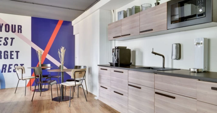 En plus du mobilier design de bureaux fourni, chaque plateau est doté d'espaces de réunion, convivialité, cuisine et phone booth.