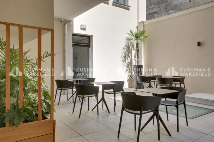 Architecture moderne sans dégradé le charme de l'haussmannien, tel est l'atout de charme de cette offre de bureaux loués en prestation de services.